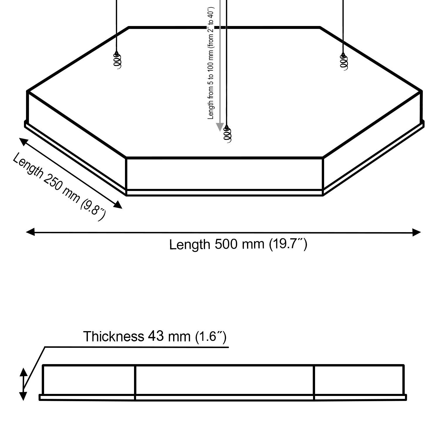 The panel comes with a special system for ceiling mounting. One panel comes with a set of 3 cables. The length of the cable is 1 meter (40 inches). Please see the video illustration in the listing on Etsy.