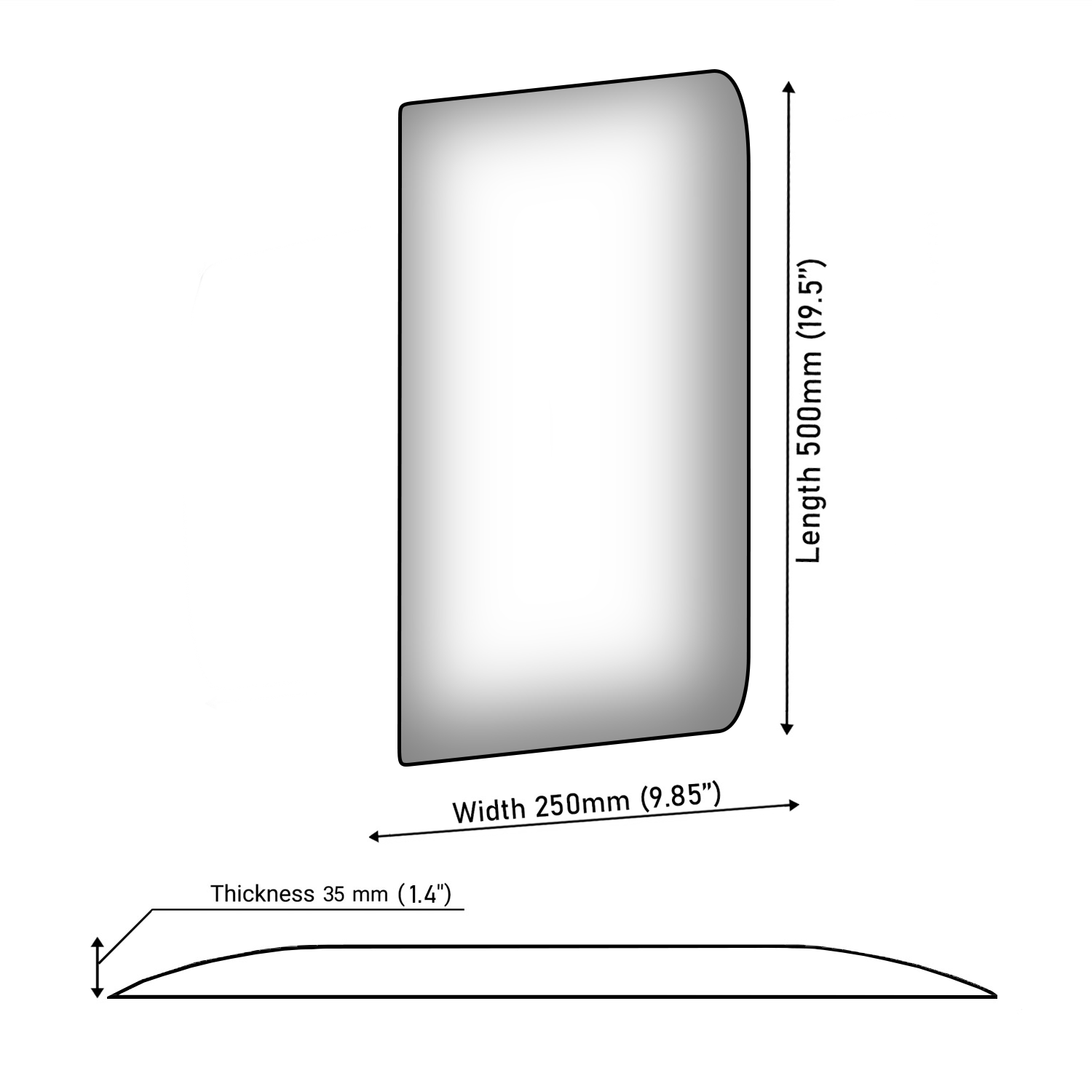 - Size: 500x250mm / (20x10inches);