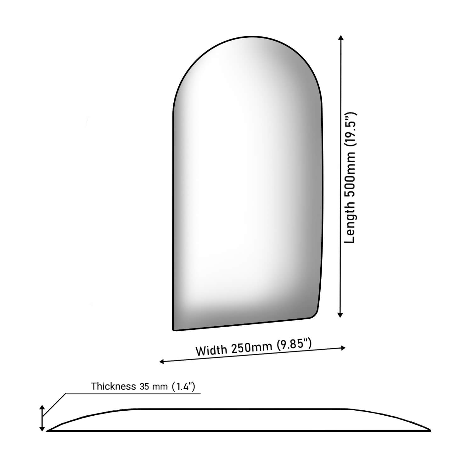 Illustration of the dimensions of Acoustic Safeboard Panels Short «Rounded»