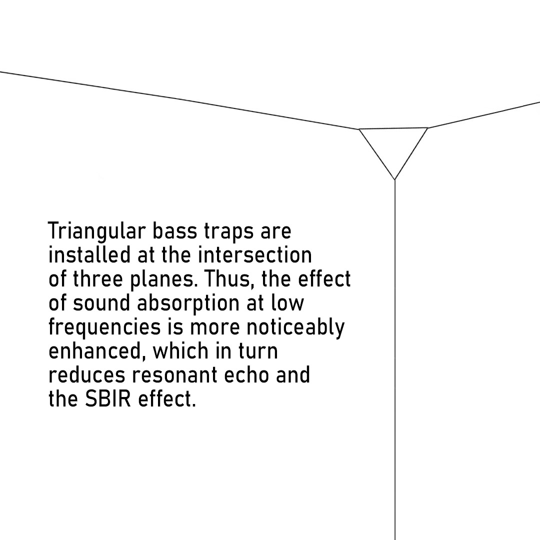 "Triangle-Сinematic" is a triangular high-performance corner bass trap that integrates into the interior of most rooms without disturbing the natural decor.